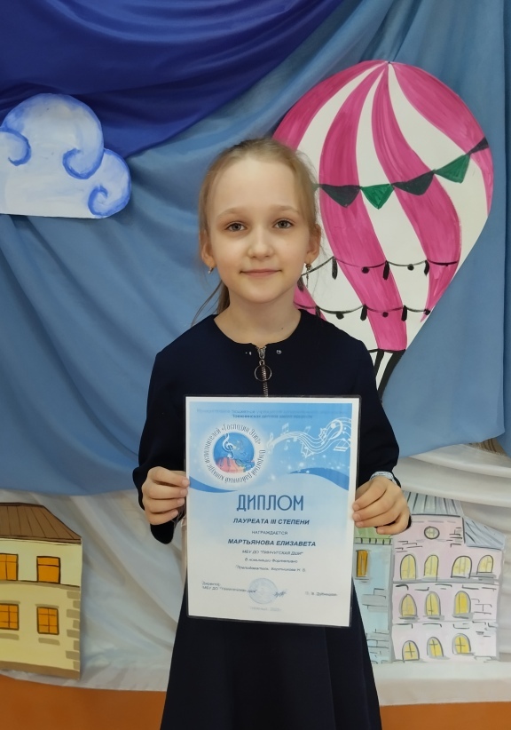 Лауреат III степени открытого зонального конкурса иснструментального исполнительства "Господин Ютюд" Мартьянова Елизавета.08.04.2025